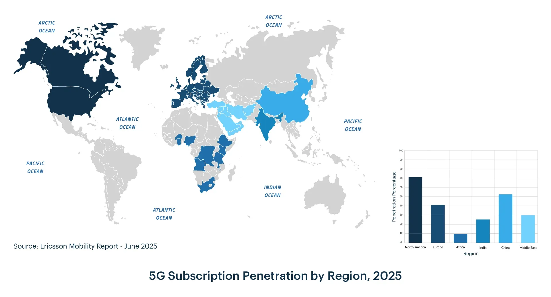 5G adoption is progressing unevenly across regions, shaped largely by government policies, market dynamics, and infrastructure readiness.